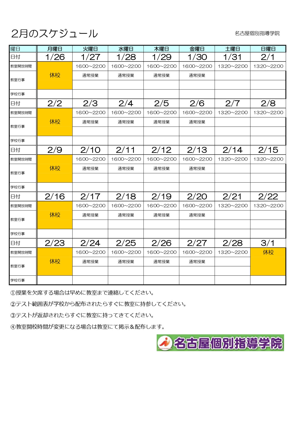 2月のスケジュール
