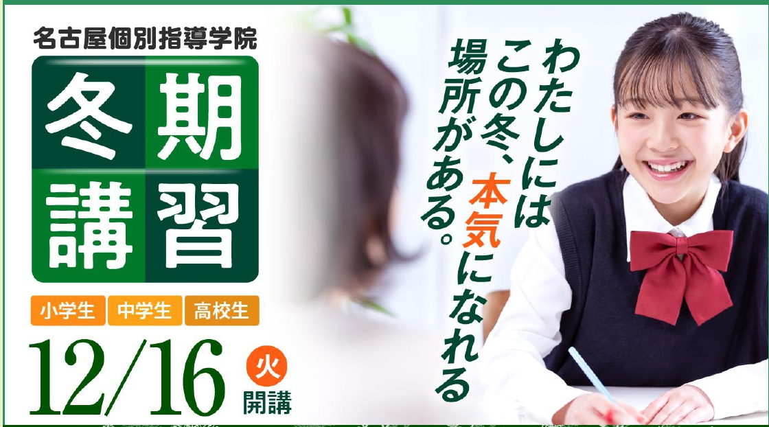 名古屋個別指導学院では、冬期講習&新入塾生を受け付けております。無料体験も随時行っております。 名古屋個別指導学院では、12月12日(金)までにお申し込みをされた方限定で2大キャンペーンを行っております。 1. 冬の2 DAYS無料体験 さらに1コマ1,000円(税込み)で最大