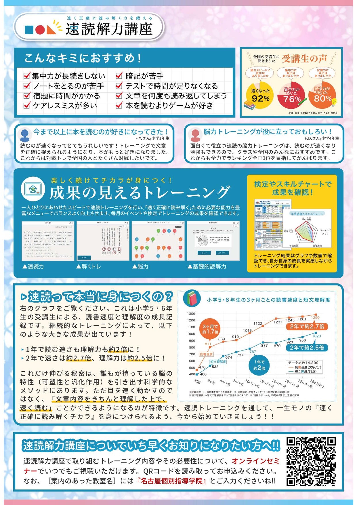 基礎学力の土台、「速読解力講座」4月入塾で1か月無料