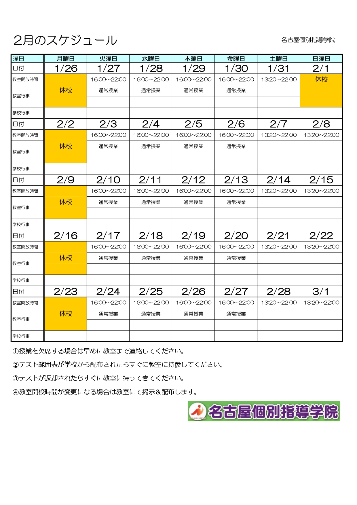 2月のスケジュール