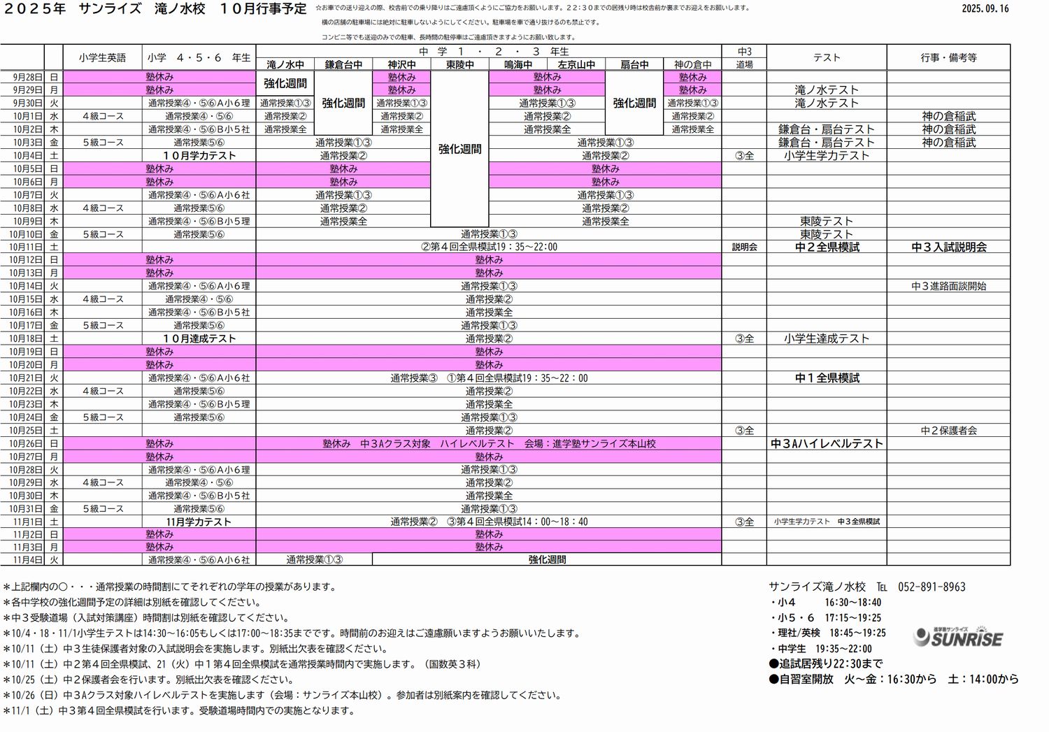 校舎に直接お電話いただくか、お問い合わせフォームよりお願いいたします。